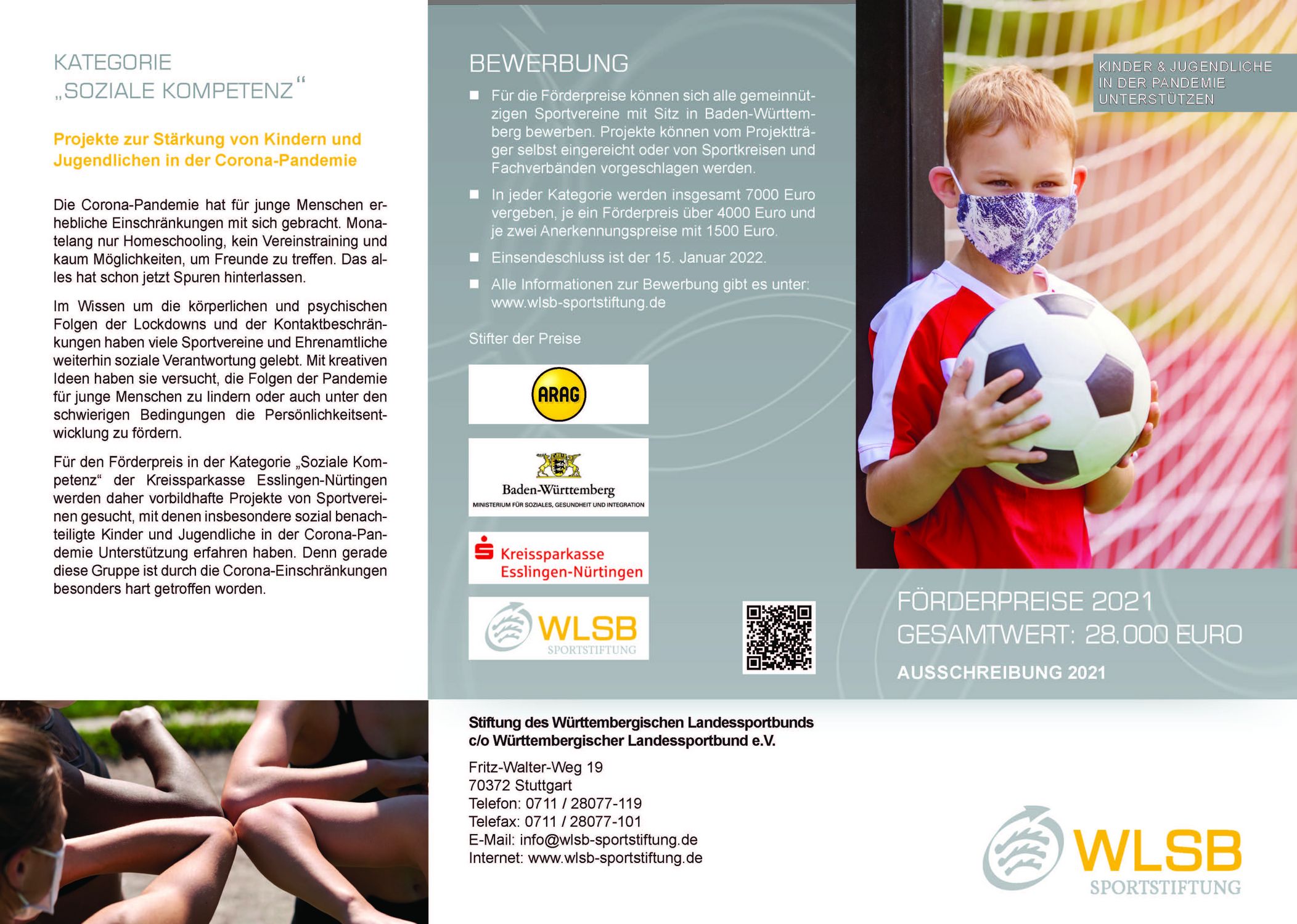 Weitere Informationen (Flyer mit der ausführlichen Ausschreibung, Teilnahmebedingungen und Bewerbungsbogen) sind unter folgendem Link zu finden: www.wlsb-sportstiftung.de/foerderung