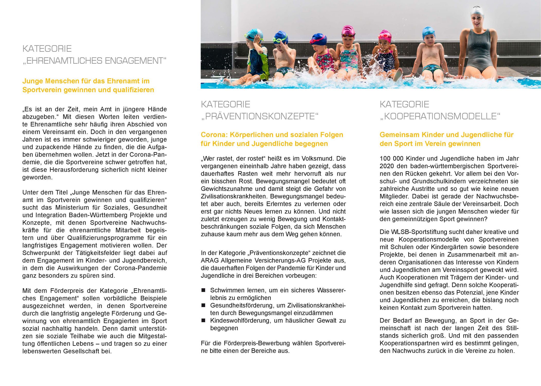 • „Präventionskonzepte“: Drei Bereiche (Vereine wählen bitte einen aus):