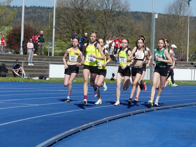 Den goldenen Anfang im Medaillenreigen machte Emma Gomringer vom SV Nufringen. Über 2000 Meter hielt sie in ihrem ersten Bahnrennen über fünf Runden von Beginn an vorne mit. Im Endspurt hängte sie die lange führende Gerlingerin Janka Mosler noch klar ab und holte in ausgezeichneten 6:57,37 Minuten den Titel bei den Mädchen W14. Bei den gleichaltrigen Jungs standen 3000 Meter auf dem Wettkampfplan. Hier feierte Lennox Wünsche (VfL Sindelfingen) seine Premiere über diese Distanz. Und eine erfolgreiche dazu. Noch auf den letzten Metern kämpfte er sich vom vierten auf den Bronzerang nach vorne und überquerte nach 10:27,78 Minuten die Ziellinie.