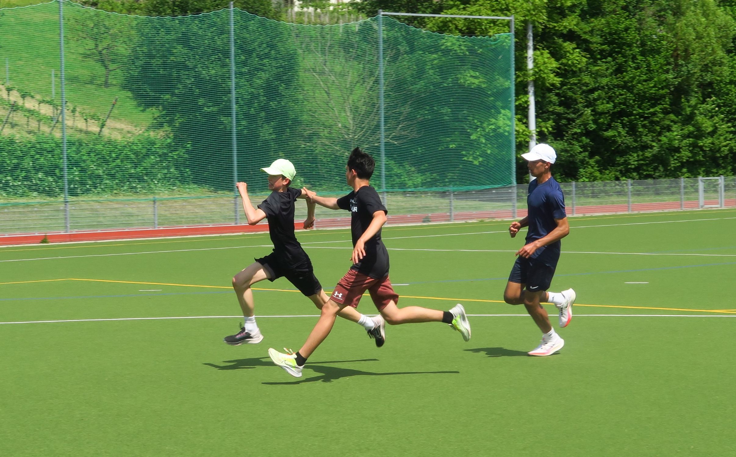 Auch in der zweiten Wochenhälfte wurde konzentriert an den Fertigkeiten gearbeitet. Bei den Mehrkämpfern mit Regina und Christoph Geissler und Tom Kunze standen Hürden, Hoch- und Stabhochsprung sowie Diskus im Mittelpunkt. Die Werfer kümmerten sich mit Carolin Streipart, Rebecca Weiser und Luca Heim neben ihren Wurfdisziplinen um die ergänzenden Disziplinen für den Blockwettkampf. Abgerundet wurde das Ganze mit Spielen, die oft nicht weniger anstrengend waren als das Training, ein bisschen Theorie zur Ernährung und Regeneration sowie dem allseits beliebten frühmorgendlichen Bach-Spaziergang mit anschließender Fußgymnastik ;-)