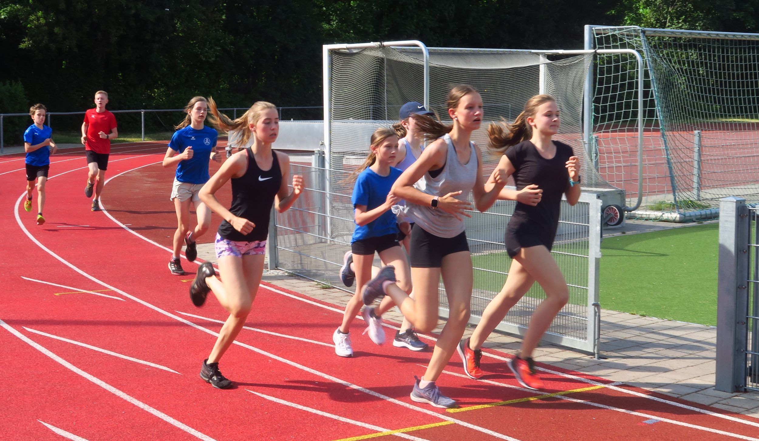 Bis auf einen kurzen Schüttler am ersten Nachmittag schien die Sonne fast durchgehend auf die Trainingseinheiten herunter, so dass fast jede Einheit mit einem Besuch im benachbarten Freibad endete. Trotzdem wurde fleißig trainiert. So standen für die Läufer unter Christoph Thürkow neben Schnelligkeit, kurzen Tempoläufen und einem Dauerlauf auch Technikeinheiten im Weitsprung, Hürdensprint und Ballwurf auf dem Programm, ebenso Schwimmen und die ein oder andere Stabieinheit. Die Sprint-Sprung-Gruppe kümmerte sich mit Cathleen Tschirch, Michael Beck, Jennifer Hartmann und Volker Zahn neben ihren Technikeinheiten auch um richtige Staffelwechsel.